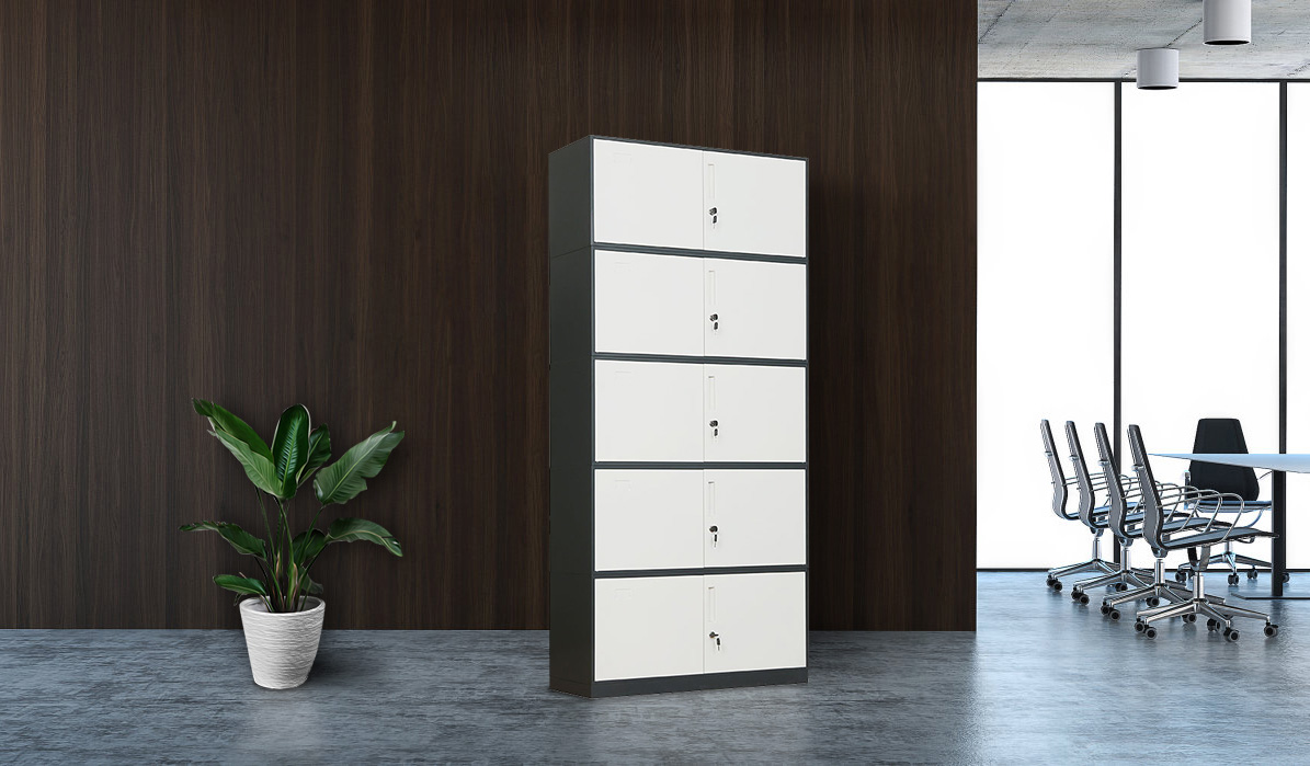 - 5 section storage cabinet, large capacity High Security locking system, 2 keys for each lock Up to 40kg load for each shelf, has reinforcement beams that provide extra support Item comes as a flat pack and requires some assembly. Instruction sheet available for step by step assembly, Installation video provided.