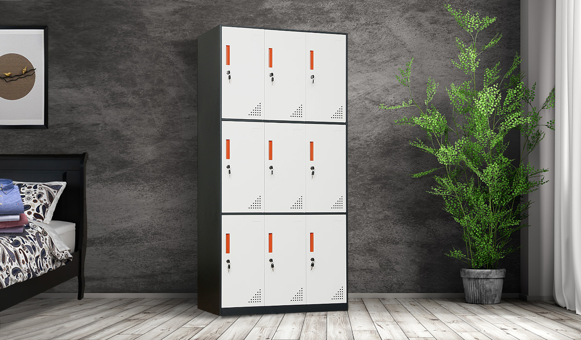 02 The Metal Lockers are ideal for colleges, high schools, locker rooms, employee changing rooms, government agencies, gyms and many other applications. Constructed of high quality cold rolled steel. 25% wider than standard lockers. Available as knocked down or assembled packs. Feature a durable powder coated finish available in gray, tan or blue. Units include a stylish handle and recessed hasp for added security and can accommodate built-in combination or key locks and combination or key padlocks.