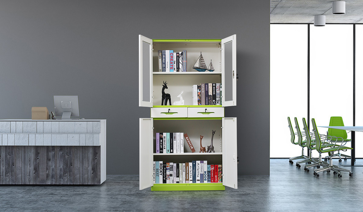 02 This office cabinet, with a simple yet stylish design, will be ideal for storing files and other office supplies. With 2 adjustable shelves and two drawers, this file cabinet has ample storage space to organize your documents. This cabinet will suit any office decor thanks to its classic design, and make a great decorative addition to your office. As the filing cabinet is made of premium steel, it is not only sturdy, but also easy to wash and maintain.