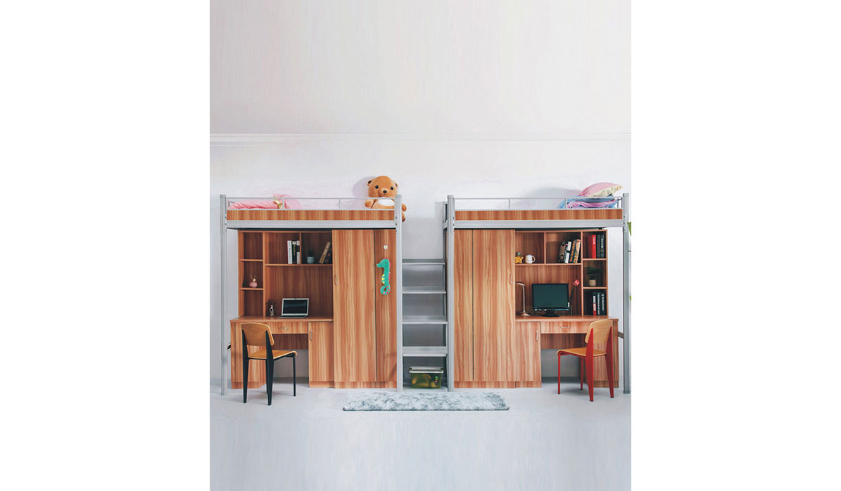 The bunk bed combines unparalleled quality and timeless design. A bedroom suitable for your child. It has a unique fixing system. The sturdy four-step ladder and full-length guardrail are more durable. The high safety guardrail on the upper bunk provides comprehensive protection, so you don't have to worry Your own child accidentally fell. The reinforced side ladder makes it safe and convenient for children to go up and down. The bunk bed has a compact design, which is suitable for bedrooms with at least a ceiling or limited space, schools and multi-person families, hoping that they share the same room. Simple and modern design replacement can complement various home decoration styles. Each sleeper has 12 solid metal slats, which can provide firm support and effectively prevent the mattress from falling. The metal bed frame can perfectly match latex, memory foam and many other types of mattresses.