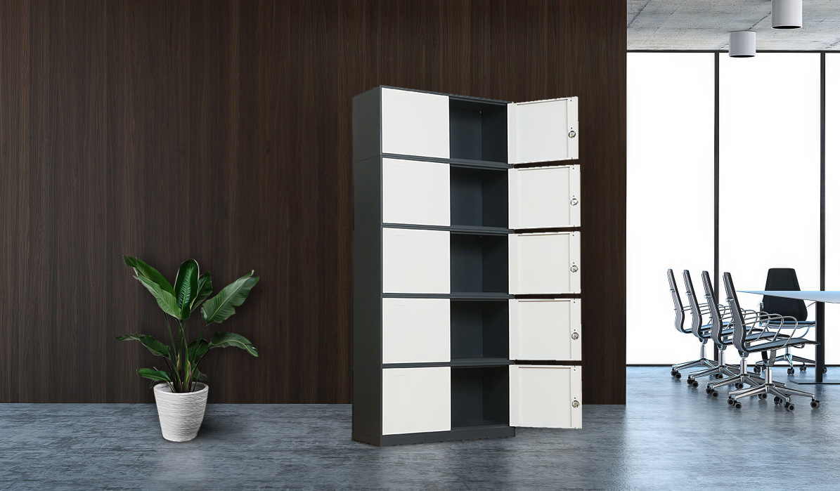 - 5 section storage cabinet, large capacity High Security locking system, 2 keys for each lock Up to 40kg load for each shelf, has reinforcement beams that provide extra support Item comes as a flat pack and requires some assembly. Instruction sheet available for step by step assembly, Installation video provided.