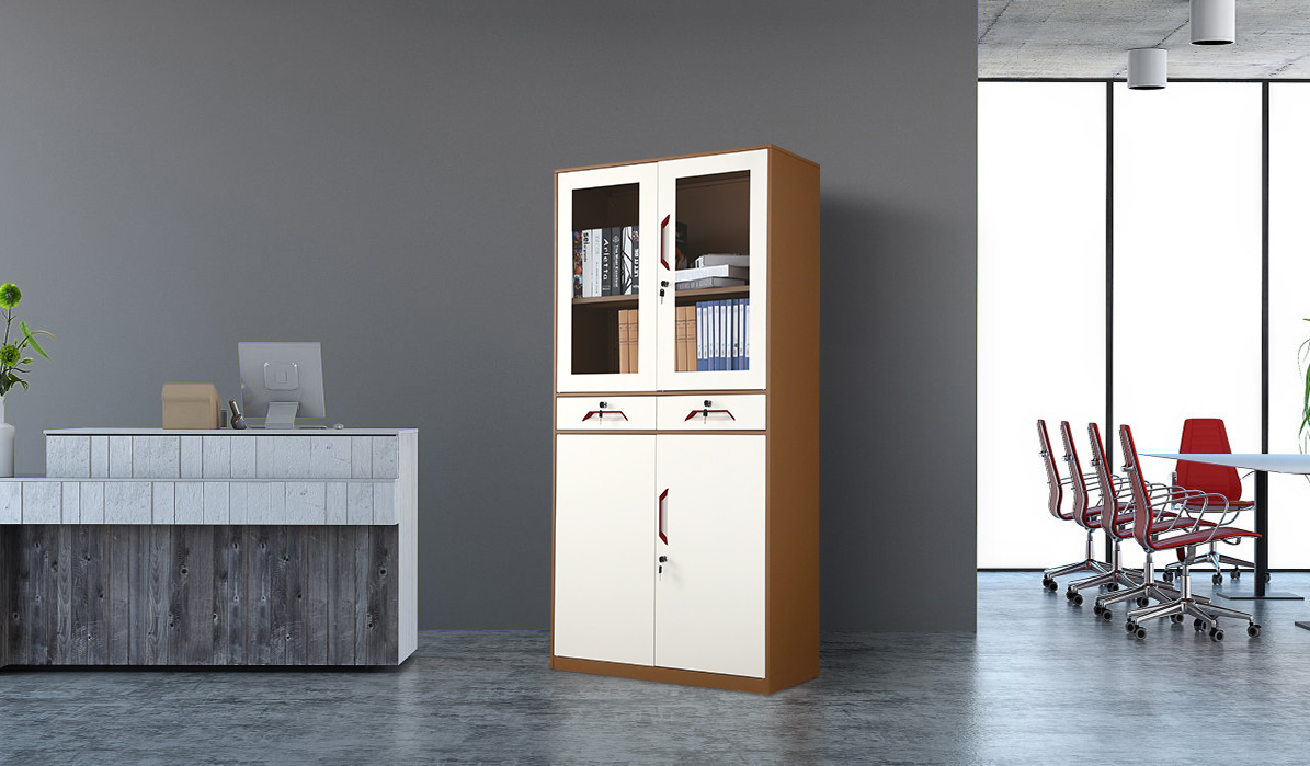 02 This office cabinet, with a simple yet stylish design, will be ideal for storing files and other office supplies. With 2 adjustable shelves and two drawers, this file cabinet has ample storage space to organize your documents. This cabinet will suit any office decor thanks to its classic design, and make a great decorative addition to your office. As the filing cabinet is made of premium steel, it is not only sturdy, but also easy to wash and maintain.