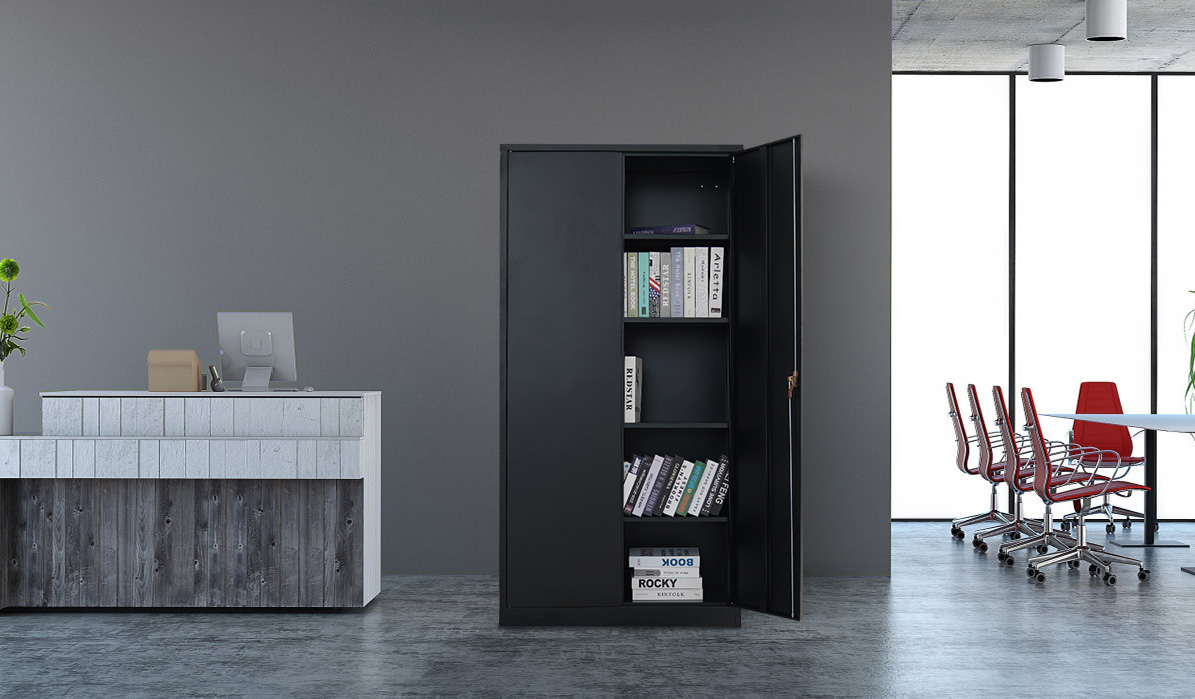 02 This office cabinet, with a simple yet stylish design, will be ideal for storing files and other office supplies. With 4 adjustable shelves, this file cabinet has ample storage space to organize your documents. This cabinet will suit any office decor thanks to its classic design, and make a great decorative addition to your office. As the filing cabinet is made of premium steel, it is not only sturdy, but also easy to wash and maintain.