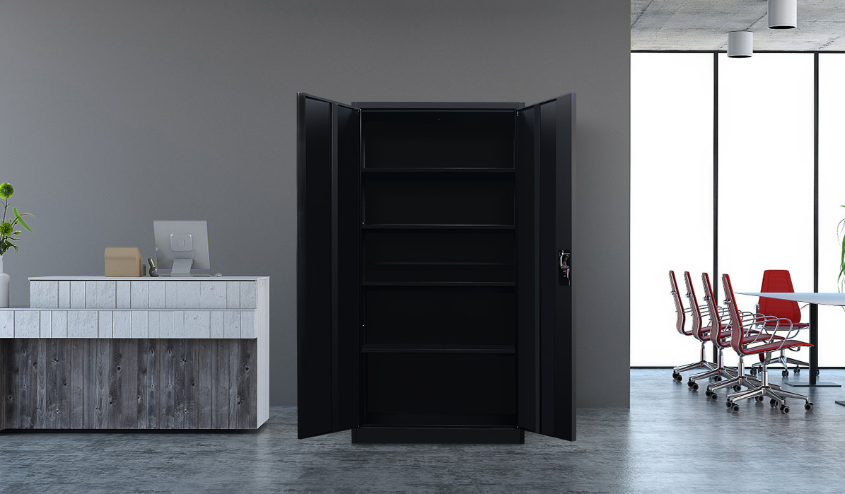 This office cabinet, with a simple yet stylish design, will be ideal for storing files and other office supplies. With 4 adjustable shelves, this file cabinet has ample storage space to organize your documents. This cabinet will suit any office decor thanks to its classic design, and make a great decorative addition to your office. As the filing cabinet is made of premium steel, it is not only sturdy, but also easy to wash and maintain.
