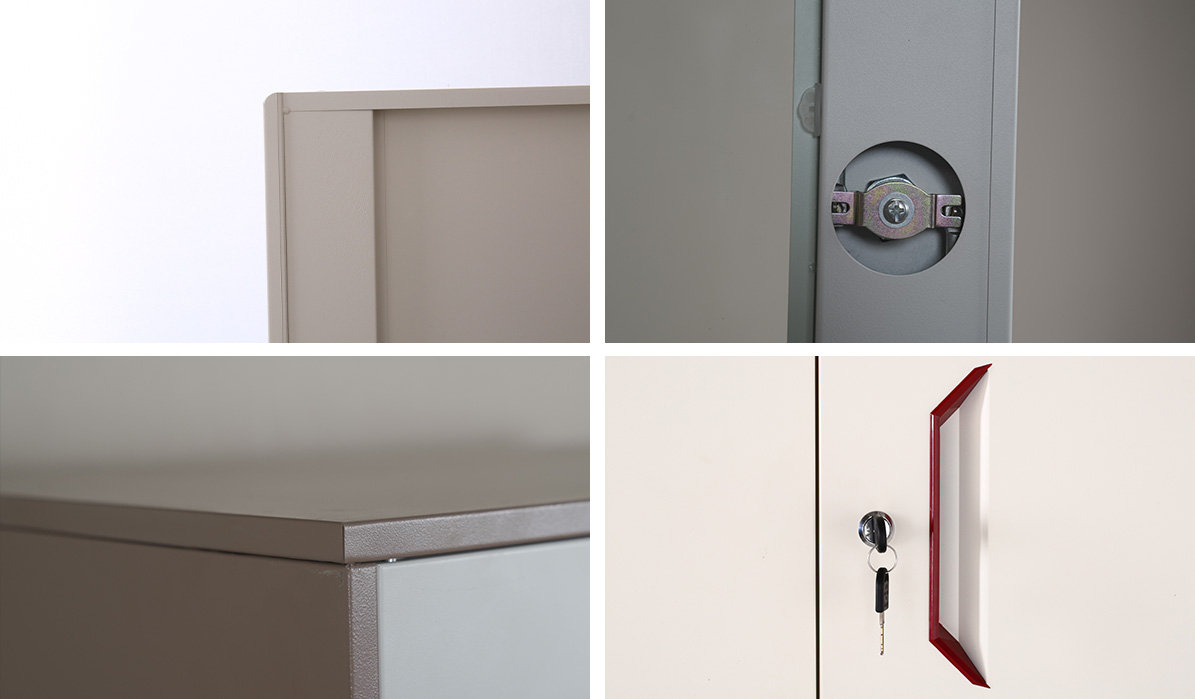 02 This office cabinet, with a simple yet stylish design, will be ideal for storing files and other office supplies. With 4 adjustable shelves, this file cabinet has ample storage space to organize your documents. This cabinet will suit any office decor thanks to its classic design, and make a great decorative addition to your office. As the filing cabinet is made of premium steel, it is not only sturdy, but also easy to wash and maintain.